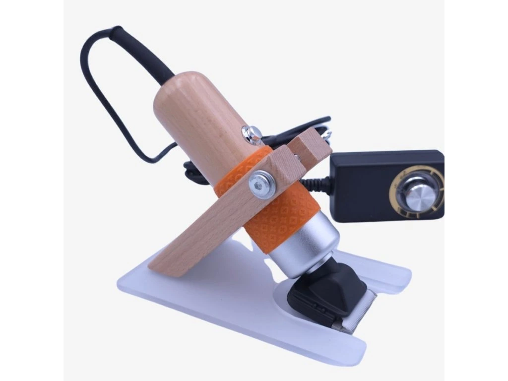 Elektrický strojek na zastřihávání tuftovaných koberců včetně vodícího nastavce! Výkon 220W, napětí 220V/50Hz, materiál nastavce dřevo + akryl. Vodící nastavec zajišťuje rovnoměrné stříhání a kontrolu hloubky střihu. Kompletní set pro profesionální výsledky! ✂️